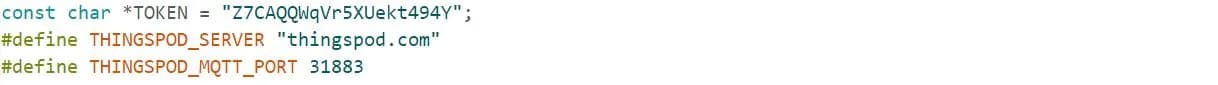 در تینگزپاد، هر دستگاه توکن مربوط به خودش را دارد که به عنوان یک شناسه برای ارتباط بین پلتفرم و دستگاه استفاده میشود. این توکن را در اینجا وارد میکنیم. (مراحل ایجاد دستگاه و کپی کردن توکن تینگزپاد در انتهای مقاله توضیح داده شده است.) سپس سرور تینگزپاد و پورت MQTT آن را نیز تعریف میکنیم.