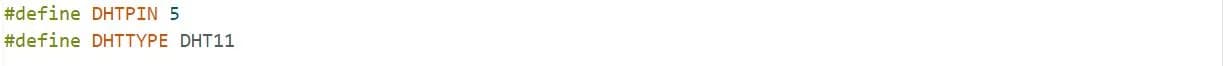 در ادامه، پین شماره پنج ESP32 را به متغیر DHTPIN اختصاص داده و نوع DHT را DHT11 قرار میدهیم.