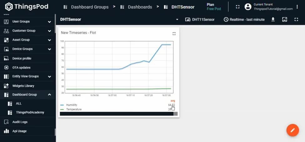البته، سنسور دما و رطوبت صرفا به عنوان یک مثال ساده در این پروژه استفاده شده است و شما میتوانید همین پروژه را با سنسورهای مختلف انجام دهید و داده تمامی سنسورها را در نمودارهای متفاوت در یک داشبورد نمایش دهید. به طور مثال، نمونه داشبوردهای ساخته شده توسط تینگزپاد را میتوانید در صفحه کاربردها مشاهده کنید.