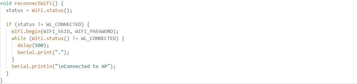 تابع ()reconnectWifi که در آخر برنامه نوشته میشود، به این صورت است: