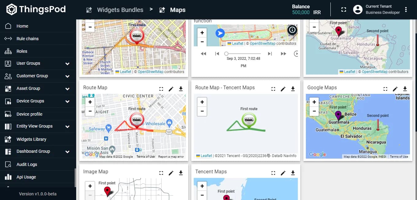 برخی اوقات نیاز است که مکان دستگاهها به طور دقیق بر روی نقشههای جغرافیایی نمایش داده شوند و یا حرکت آنها به صورت ردیابی لحظهای بر روی نقشه مشخص شود. برای این امر، میتوان از ویجتهای نقشه استفاده کرد. این نقشهها تنها به نقشههای هوایی محدود نمیشوند و میتوانید نقشههای سفارشی از درون ساختمان یا فضاهای بسته را نیز به صورت عکس به تصویر کشید و المانها را بر اساس مختصات بر روی آن به نمایش گذاشت.