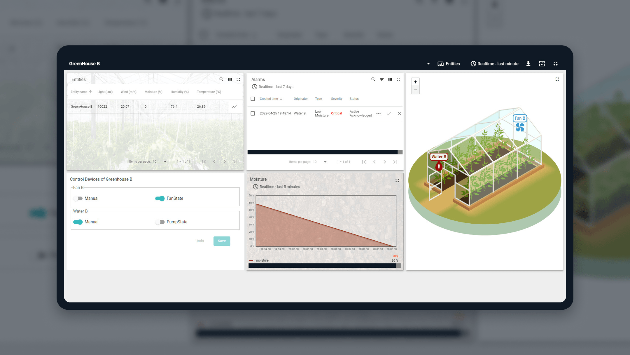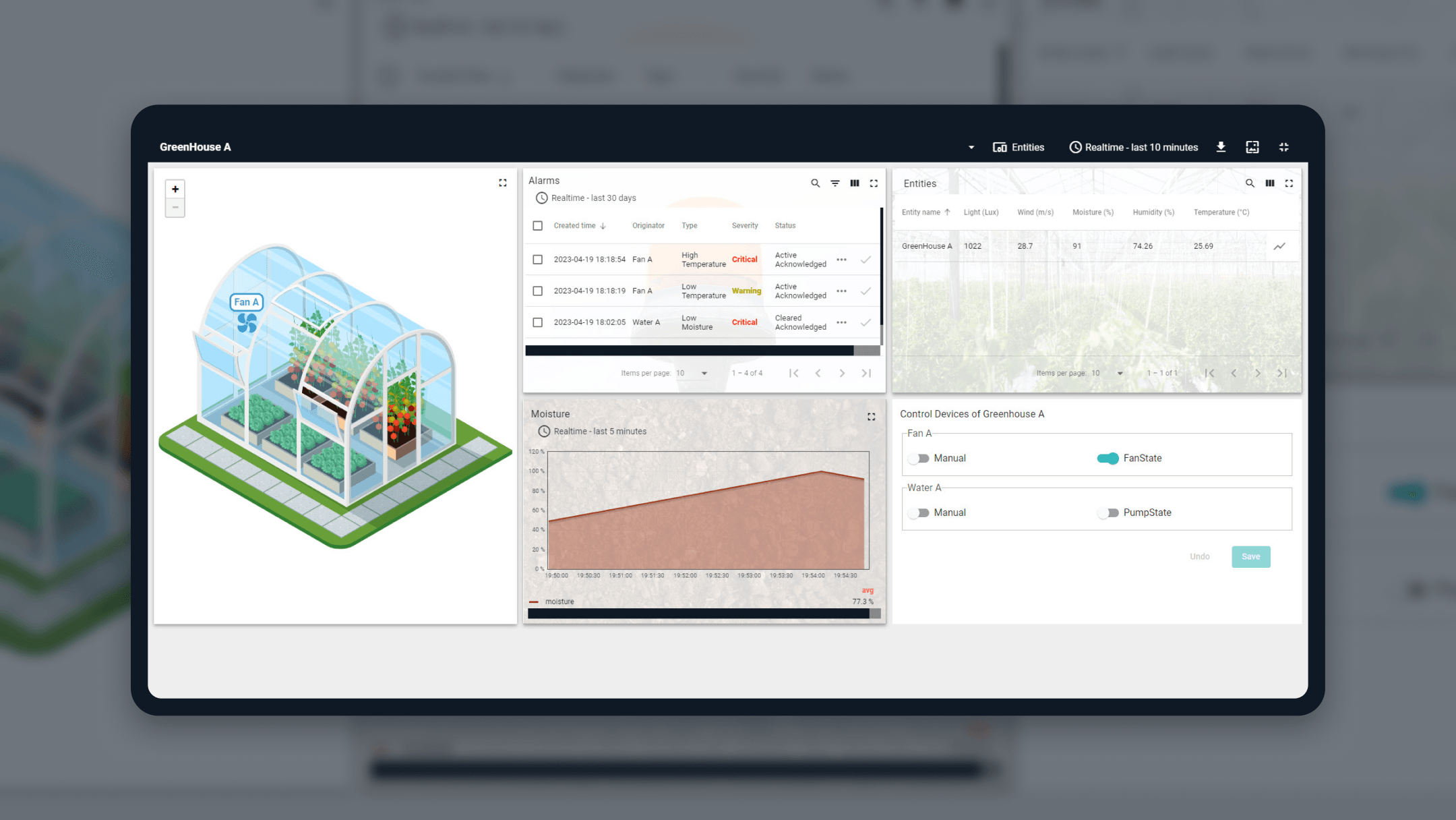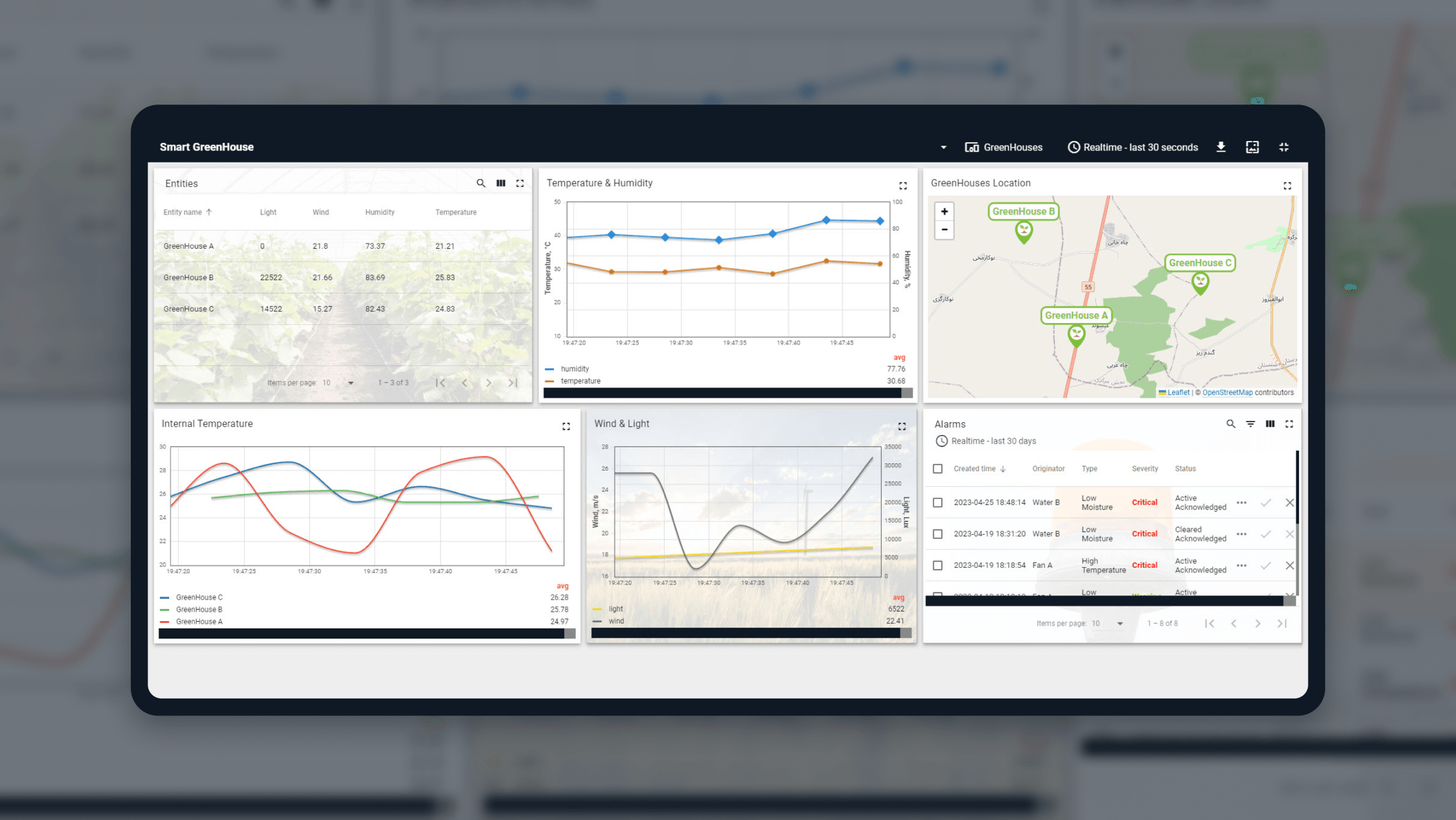 شما میتوانید انواع دادههای مربوط به پارامترهای خاک و آب، مکان تجهیزات و کارکنان مزرعه و اطلاعات سنسورها را با استفاده از نودهای هوشمند به پلتفرم تینگزپاد ارسال کنید. تینگزپاد از انواع پروتکلهای تحت وب نظیر MQTT، HTTP و CoAP و سایر پروتکلهای صنعتی مانند Modbus، OPC-UA و LoRaWAN پشتیبانی میکند. سپس، از طریق پلتفرم قادر خواهید بود انواع پردازشهای لازم را بر روی داده دستگاههای پرورش هوشمند خود اعمال کرده و اطلاعات را از طریق ویجتهای پیشفرض نمایش دهید.